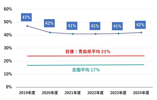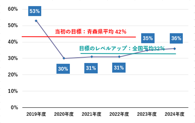 - ・社内講話、社員食堂のヘルシーメニュー導入等による健康度(健診有初見率)の改善